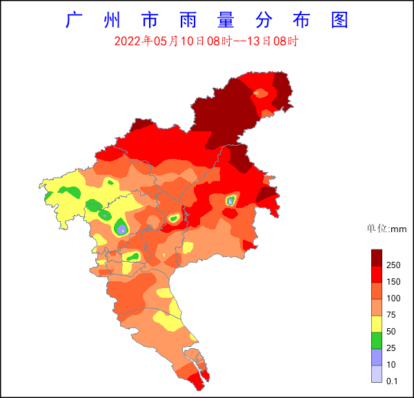 圖1 10日08時至13日08時廣州市雨量分布圖